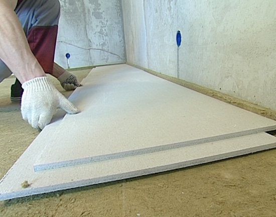Полагане на листове от гипсофазерни плочи на пода