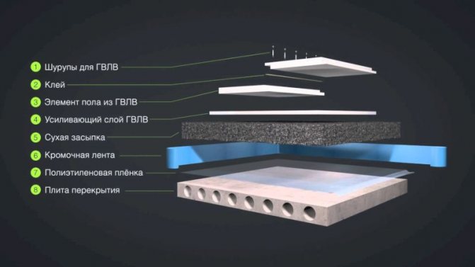 Използването на листове от гипсови влакна значително увеличава звукоизолационните характеристики на пода. Друго предимство на този довършителен материал е способността да задържа топлината, поради което GVL за пода съчетава функциите на под и изолация. Използвайки листове GVL, вие изпълнявате замазката по сух и чист начин и можете веднага да започнете да полагате покривния слой.