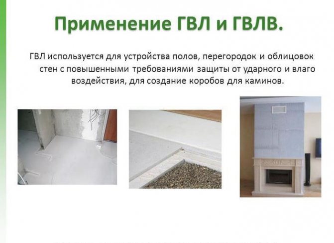 Има версия, устойчива на влага на този материал - GVLV и обикновени GVL листове. Те се използват в различни помещения.
