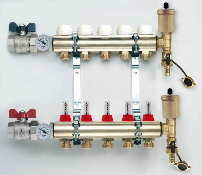В допълнение, веригите имат различна дължина и имат различни изисквания за топлинна енергия. Следователно е необходим специален блок между котела и тръбопровода, който ще разпределя потоците гореща вода по контурите.