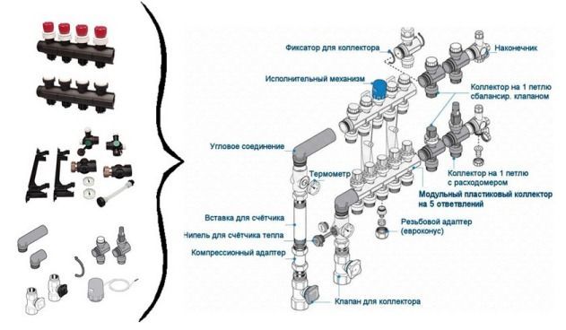 Сортовете, оборудването и предназначението на отделните възлови елементи на колекторите вече са описани в статията "Избор на колектор за топъл под: видове, оборудване". Ето защо тук ще припомним накратко, че за сглобки от различните му видове ще са ви необходими: