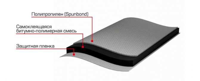 На обратната страна на продукта има битумно-полимерно покритие - то е защитено от слой филм. Премахва се преди полагане на TechnoNicol.