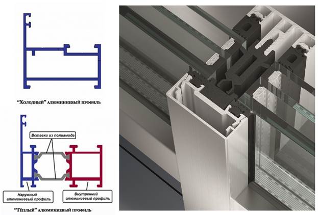 За да изолирате рамката на конструкцията, можете да замените съществуващия алуминиев профил със същия аналог, но със специална вложка от полиамид. Този метод е доста скъп, тъй като ще трябва да замените напълно цялата рамка на остъкляващата стена.