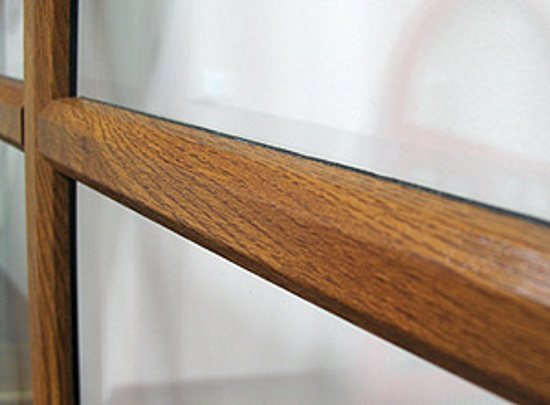 - Алуминиев профил с декоративни дървени облицовки от вътрешната (стайна) страна на прозореца.