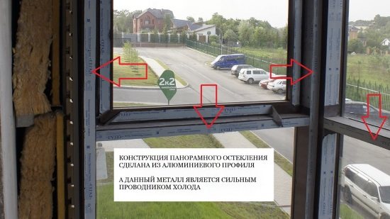 Подаването на топлина в такова помещение при отрицателна температура на въздуха навън ще доведе до образуване на лед върху стъклото, а отоплението ще бъде незначително поради сериозни топлинни загуби.