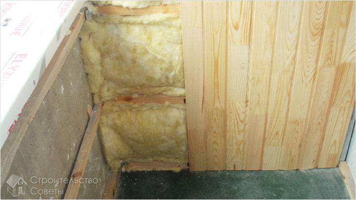 Паралелно един на друг в една равнина се монтират дървени блокове със стъпка 30-40 см. Между тях се поставя минерална вата или пяна. Всички пукнатини, образувани по време на инсталационния процес, могат да бъдат запечатани с полиуретанова пяна. През зимния сезон се използва специална полиуретанова пяна, която има свойствата на втвърдяване при ниски температури на въздуха.