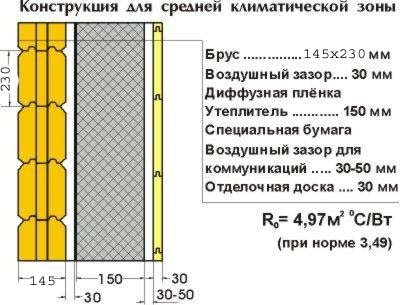Получената в резултат на нашите действия многослойна структура ще осигури надеждна топлоизолация на дървените стени и ще гарантира формирането на благоприятен температурен режим. В същото време вътрешната изолация нарушава естествения въздушен обмен, следователно, за да се отървете от излишната влага, си струва да се погрижите за висококачествена вентилация.