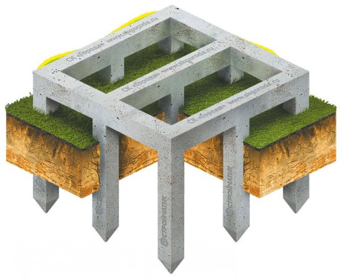 Този тип фундамент е оборудван със стълбове, които са вкопани под линията на замръзване с около 2 m.