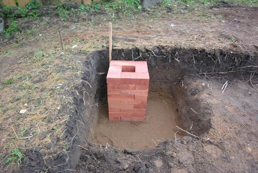 Тухла или зидария. При създаването на такъв пълнеж, както в първия случай, се създава подметка за стените му (изкоп с възглавница). Тухлената зидария е 1,5 тухли, а дебелината на каменната стена трябва да бъде не повече от 300 мм. След това зидарията се излива с бетонов разтвор (до нивото на земята), подсилен с армировка.
