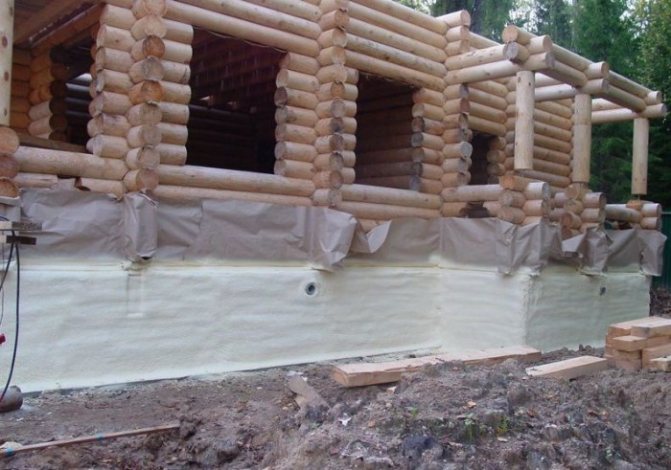 - Полиуретановата пяна е най-ефективната фундаментна изолация, перфектно намалява нивото на топлинните загуби. Единственият недостатък е, че не можете да правите без специално оборудване по време на инсталирането му.