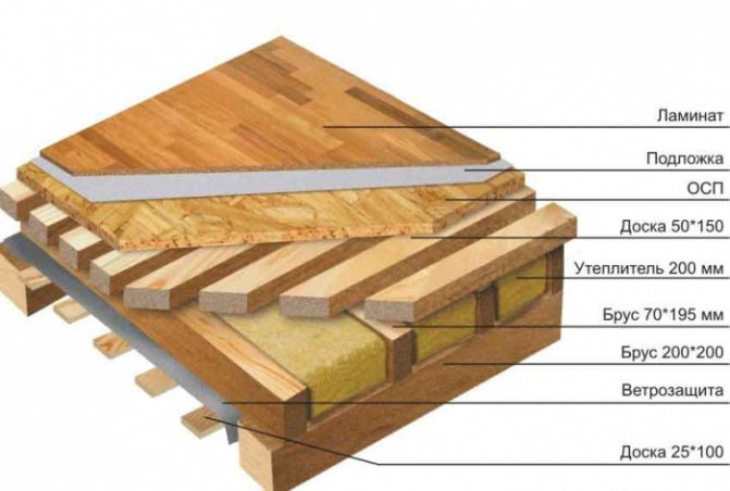Важно! В къща от дърво върху пилотна основа е задължително всички дървени подови елементи да се третират с антисептик.