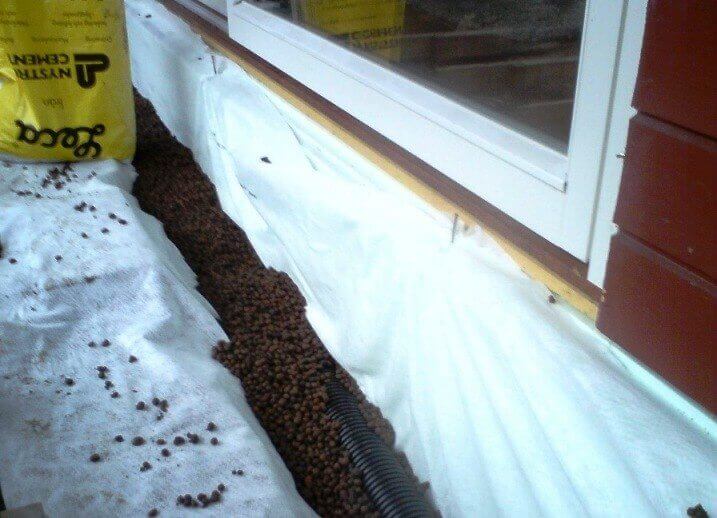 Под облицовката се изкопава плитък изкоп, където се изсипва слой пясък (2-3 см), върху него се поставя експандирана глина и изкопът се покрива отгоре с пръст, така че да няма пролука между почвата и облицовката.
