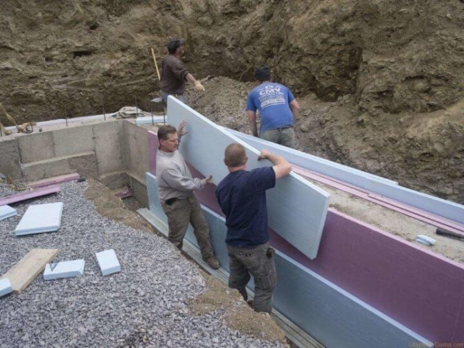 Възможно е да се изолира основата на купчината с пяна или EPSP отвън или отвътре. Ако това се прави навън, тогава изолацията се прикрепва преди завършване. Ако покритието вече е прикрепено към цокъла, например, ако това са фасадни панели или DSP плочи, тогава изолацията е монтирана отвътре.