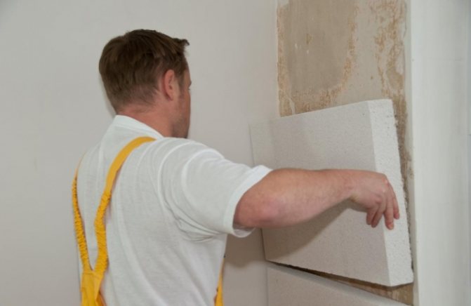 - плочи от полистирол, експандиран полистирол или базалтова вата са залепени към стената с лепило;