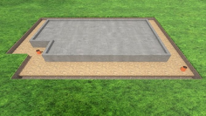 - пясък (15 см) се изсипва в изкоп, изкопан близо до основата;