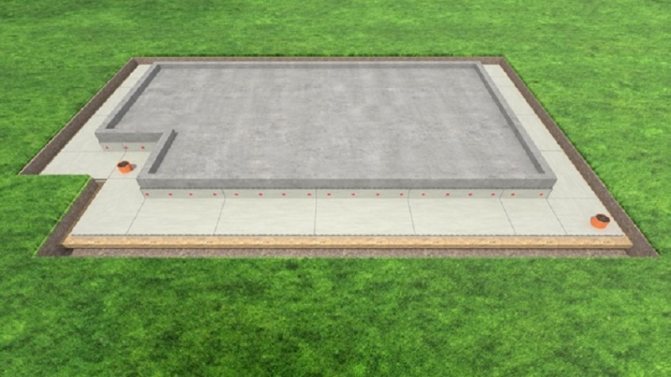 Изолацията се полага преди изливането на основата в кофража, което се прави повече от ширината на един или два листа изолация по ръбовете във вертикално положение. Дебелината на изолацията, като правило, е най-малко 10 см (по-точна стойност зависи от климатичните условия на вашия регион). Изолацията е прикрепена към частта от конструкцията, която се намира над земята след отстраняване на кофража. Довършването се извършва директно върху него.