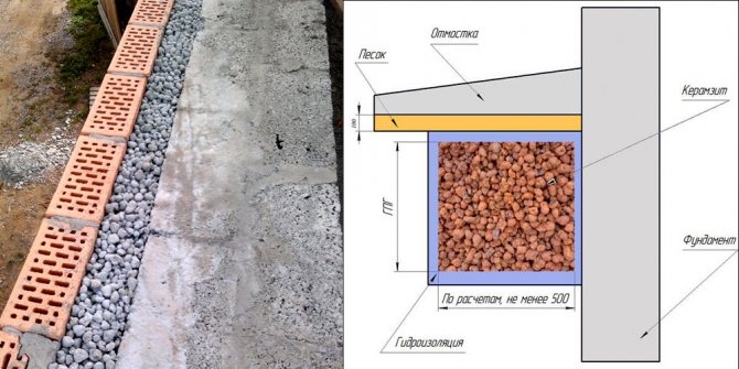 Последният акорд в комплекса от мерки за изолация на конструкции в контакт с земята е устройството на изолирана слепа зона. Той ще отклони водата от къщата и ще предпази конструкцията от въздействието на силите на измръзване.