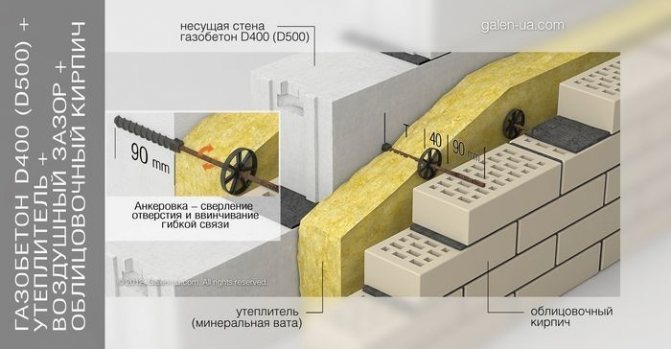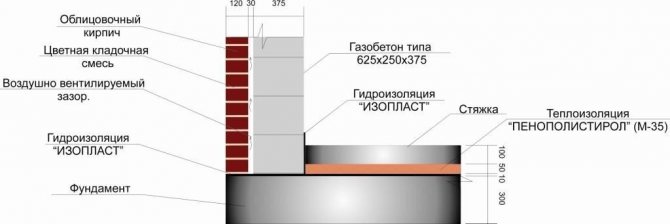 Схема на изолация на стени от аериран блок.