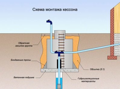 Кесонът е специално устройство за водоприемна система. Това е резервоар, монтиран в земята, цилиндричен или правоъгълен, изработен от метал или пластмаса. Можете също така да създадете структура, като излеете бетон. Монтира се заедно с филтри, акумулатор и помпа. Кесонът за кладенеца е изолиран отвътре. Кесоните не се използват за помещения с добро отопление.