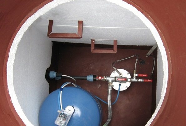 - Непрекъснатата работа на водоснабдителната система в частна къща през цялата година гарантира, че се поддържа оптималното вътрешно налягане, което ще предотврати стагнацията и замръзването на водата. През нощните периоди консумацията може значително да се намали или спре, което ще доведе до временно замръзване на водата. В този случай ще е необходимо да се изолират тръби и монтирани хидравлични устройства (помпа и акумулатор) с помощта на кесон.