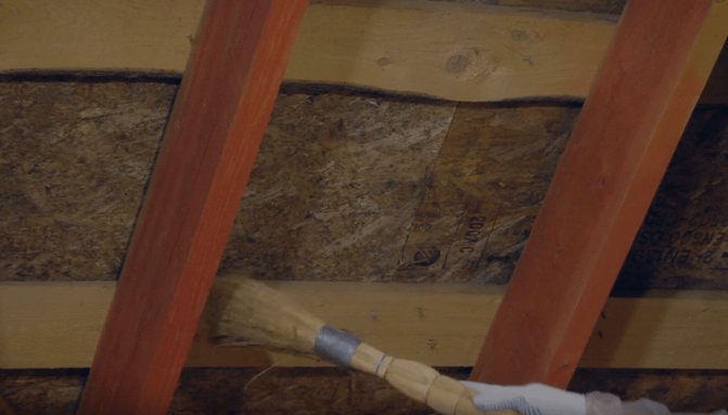 Важно! Ако изолацията е направена с полиуретанова пяна, таванското помещение спира да „диша“. Създава се ефектът на термос. Ще е необходимо подреждане на вентилацията, в противен случай ще се образува влага. 1-2 слоя полиуретанова пяна на покрива на тавана ви позволява да спестите до 30% топлина