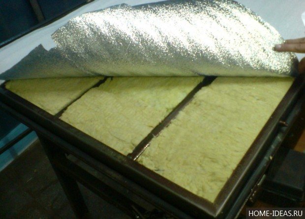 - Прикрепете втория слой изолация от фолио към дървените блокове, оставяйки непокрити места за монтиране на фитингите.