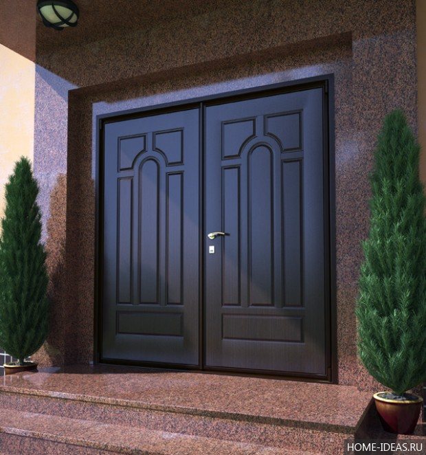 Важно! Довършителният MDF материал е избран, за да съответства на довършителните работи, използвани в интериора. Тогава вратите отвътре изглеждат като интериорни врати. Сходството се подчертава от подобна дръжка на вратата.