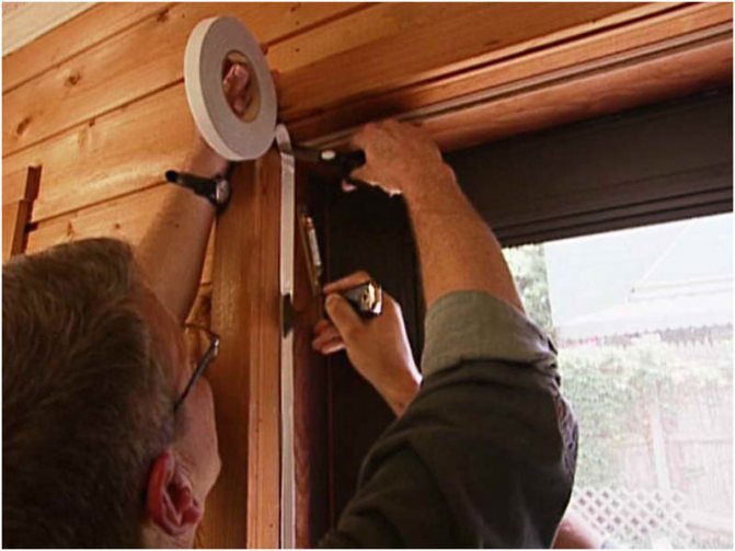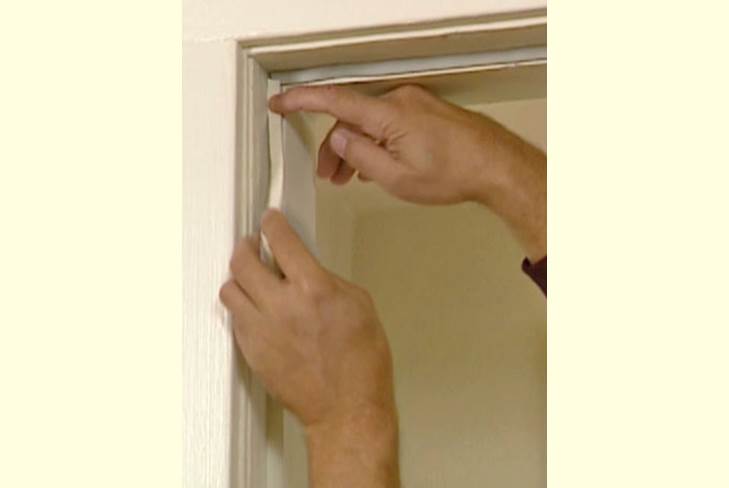 Залепете уплътнителя към обезмаслена повърхност. Защитният слой се отстранява от лентата постепенно, предотвратявайки изсъхването на нанесеното лепило. В широките рамки на вратите са залепени няколко реда уплътнения, което значително намалява количеството топлинни загуби.