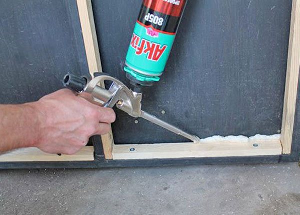 Монтажната пяна се използва за елиминиране на пролуки между рамката и вратата, както и за запълване на кухините на елементите на рамката, направени от профила.