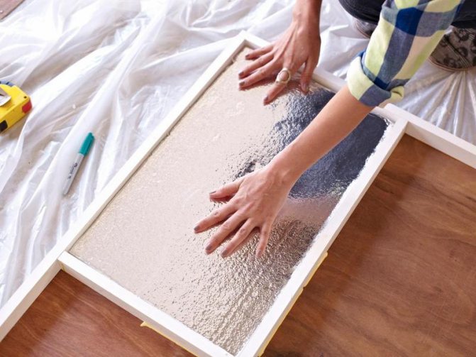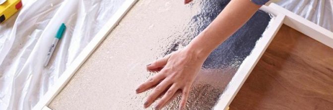 - След това всеки сектор е покрит с лепило, така че изолацията, избрана за изолацията на вратата, да се придържа по-добре. Лепилото се нанася на ленти или на непрекъснат тънък слой.