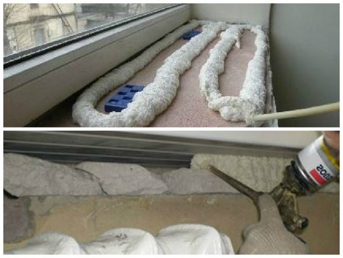 Когато причината за теченията стане известна, могат да започнат изолационни работи. Необходимо е да закупите топлоизолационни материали. Отличен вариант за премахване на източници на продухване през перваза на прозореца е полиуретановата пяна. Покрива целия периметър на перваза на PVC прозореца. Пяната се нанася в центъра с две пресичащи линии, за да се улесни закрепването на перваза на прозореца към основата на прозореца. Следващата стъпка е монтирането на конструкцията към основата на отвора в прозореца.