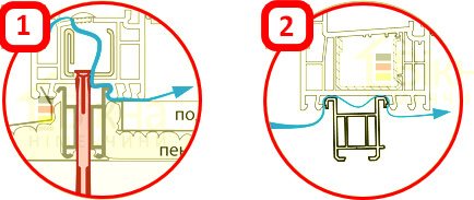 Възможно е продухване и между стената и перваза на прозореца. Топлоизолацията се извършва преди инсталирането на плочата на перваза на прозореца, полагане на изолацията, последвано от разпенване на пролуките между перваза на прозореца и тухлената зидария или бетонната стена.
