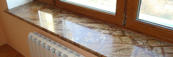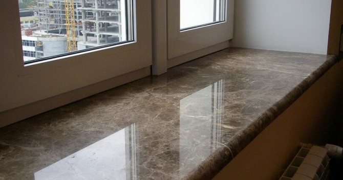Друг вариант би бил масивно парче камък или бетон - по цялата дължина на прозореца. В този случай монолитна плоча ще бъде инсталирана върху бетонна основа по цялата си ширина. За такава инсталация се използват хидроизолационни смеси или цимент с добавка на течно стъкло. Видимите зони на циментовата зидария се обработват със стартер или покритие, за да придадат на прозореца естетичен вид.