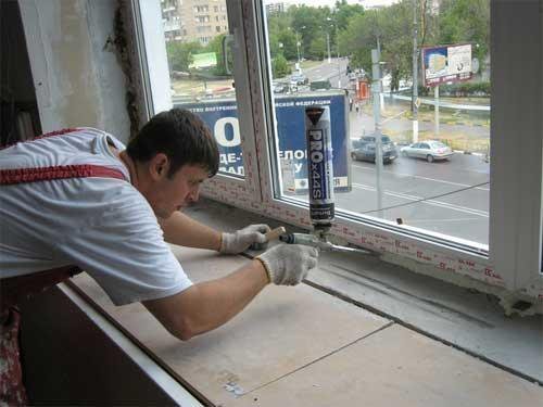 Това е необходимо, за да се поправят старателно чипове и пукнатини по повърхността на склона на перваза на прозореца. По този начин се елиминират източниците на чернови. За да прикриете пукнатините, използвайте полиуретанова пяна или акрилни уплътнители. След това плочата на перваза на прозореца се монтира в обратен ред и фугите се обработват.