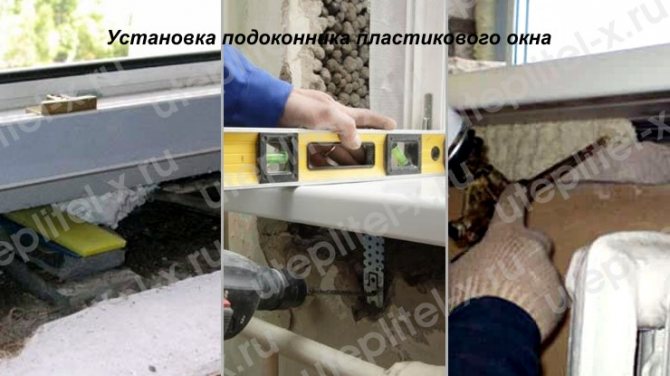 Монтажът на перваза на прозореца започва след подготовката на повърхността на рамката. Преносимият перваз на прозореца се прилага към основата на структурата на прозореца. Подготвени са дървени опори, които ще осигурят изчислената твърдост на плочата по време на работа. За да направите това, направете вътрешни и външни измервания на действителното разстояние от основата до дъното на перваза на прозореца с помощта на рулетка. Когато первазът на прозореца лежи в основата, използвайте акрилен уплътнител или полиуретанова пяна. Затворете фугата на вътрешната повърхност на пластмасовия перваз на прозореца и инсталационния профил, за да предотвратите образуването на "мостове на студа".