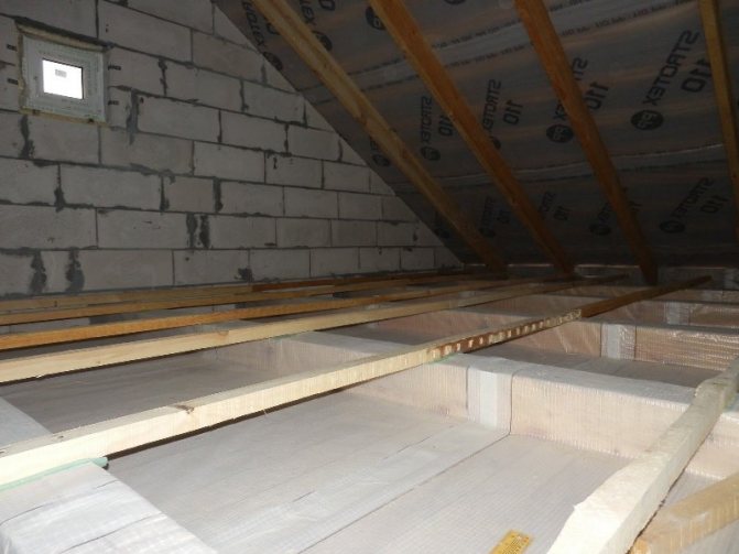Ако таванското помещение се планира да се използва като таванско помещение, то топлоизолацията трябва да се състои от три слоя: пароизолация (положена с грубата страна надолу, гладка - към топлоизолацията), топлоизолация и хидроизолация