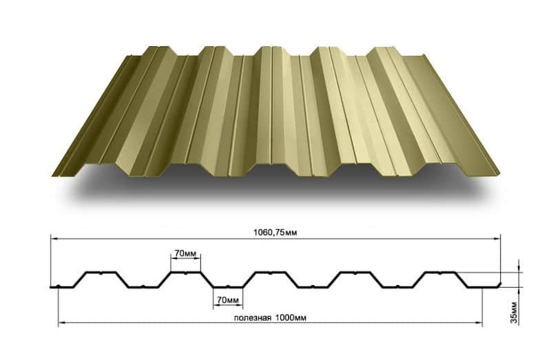 Профилираният лист се използва в големи обеми при изграждането на плоски покриви за офиси, частни къщи, сгради на малки и средни предприятия, складове.