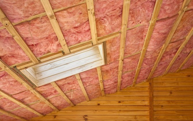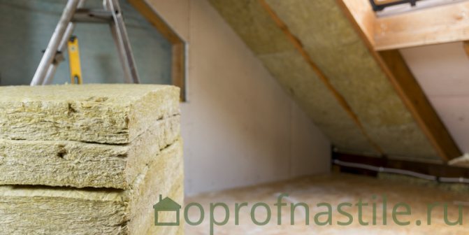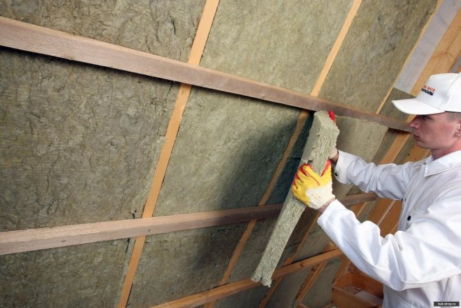 Всички части се регулират на разстоянието между гредите. Най-удобният начин за работа е използването на бояджийски нож. Закрепването се извършва с найлонова резба, както и с 50мм * 50мм релси за допълнителна, напречна изолация. Задължително шпора между гредите, като същевременно запълва всички кухини и пукнатини. Не се препоръчва компресиране на минерална вата, поради което маркирането и подготовката на листове трябва да се извършват възможно най-големи. Слоят мембрана за бариера срещу пара е фиксиран отгоре и затворен, ако е необходимо, с довършително, декоративно покритие.