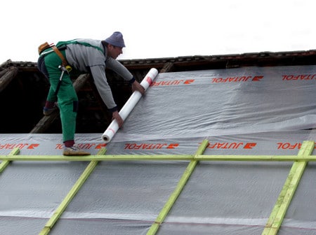 - Освен това изолацията се намира в покривната система. Неговата задача е да не пропуска топлинна енергия в атмосферата и да не пропуска студен въздух в тавана.