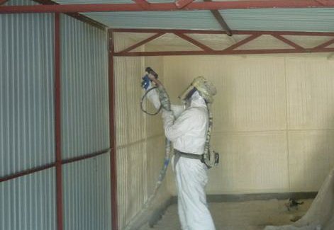 Изолационната полиуретанова пяна се напръсква върху повърхността със специално оборудване, като цялата работа се извършва от специалисти на трети страни. Участието на собственика на къщата в процеса на изолация е минимално.