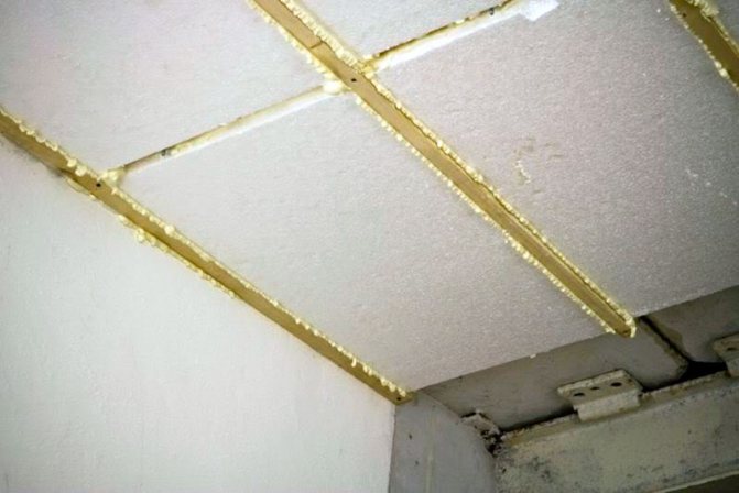 - Нанесете разредения разтвор върху листове от пяна (1m * 1m) или върху penoplex. Лепило за тавана.