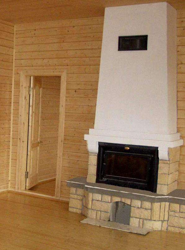 Декорация на камина с гипсокартон в дървена къща - На второ място, въпреки естествения завършек на дървото, във всеки случай ще се изисква допълнително довършване на външните повърхности на помещенията: баня, баня и кухня. Стените на тези помещения ще бъдат изложени на по-висока влажност, което ще влоши материала.