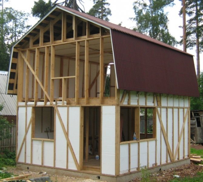 Едноетажна къща, външна изолация на стени с дървени стърготини.