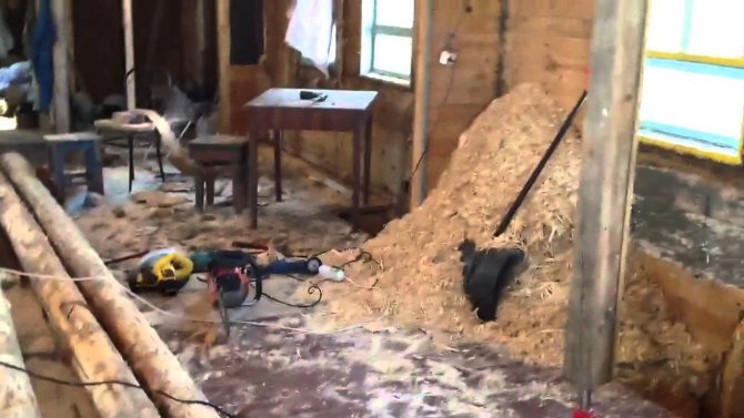 - Когато изолирате сграда или я реконструирате с дървени стърготини, не се изисква укрепване на основата;