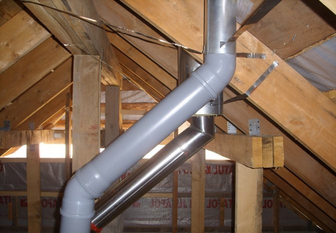 При организиране на вентилация по естествен начин в зони с образуване на замърсяване за движение на въздуха, вертикалните канали са монтирани с изход към покрива. Чрез тях застоялият въздушен поток излиза в атмосферата на значителна височина: колкото по-високо е разклонителната тръба, толкова по-ефективна е тягата. Дървени сгради и рамкови сгради, както и сгради, за които не е била осигурена вентилация на етапа на проектиране, са оборудвани с пластмасови тръби.