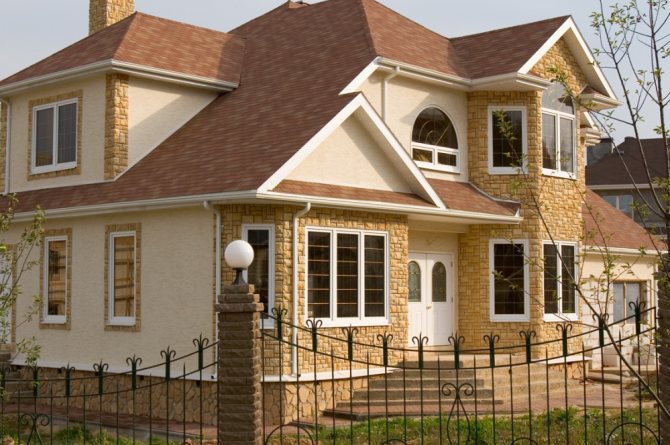 Основното предимство на термопанелите, използвани за декорация на фасадата на къщата, е ефективната топлоизолация на сградата - 50 см полиуретанова пяна замества тухлена зидария с дебелина 1 метър. В същото време, дори след няколко години експлоатация, когато измазаните повърхности вече променят цвета си и се рушат, топлинните панели запазват цвета, здравината и топлинните си характеристики. Този материал не изисква специално почистване или специални грижи.Издържайки на всякакви метеорологични условия и механичен стрес, това ще продължи поне 30 години.