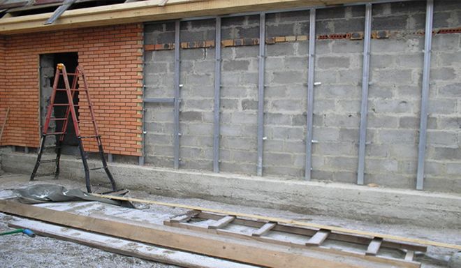 За да се даде на цокъла естествена проекция на стената отдолу, се прави специална обшивка от метални профили или от дървени греди.