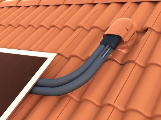 - устройство на топлоизолиран вентилационен канал през отвор, разположен в горната част на покрива или външната стена.