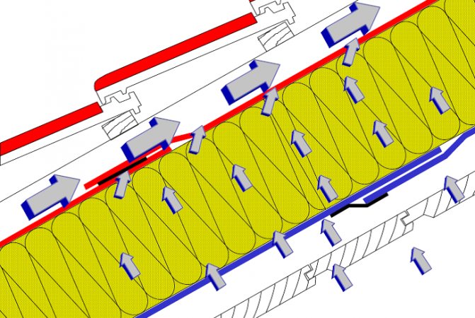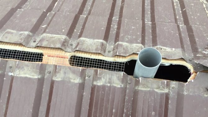 - шисти, ондулин - свободен поток на студен въздух от долната част на покрива и отстраняване на топъл въздух през вълни от материал.