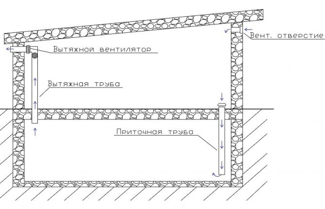 - Вентилационното устройство в сутерена на гаража е направено по такъв начин, че външните изходи на тръбите да бъдат затворени от дъжд или сняг.